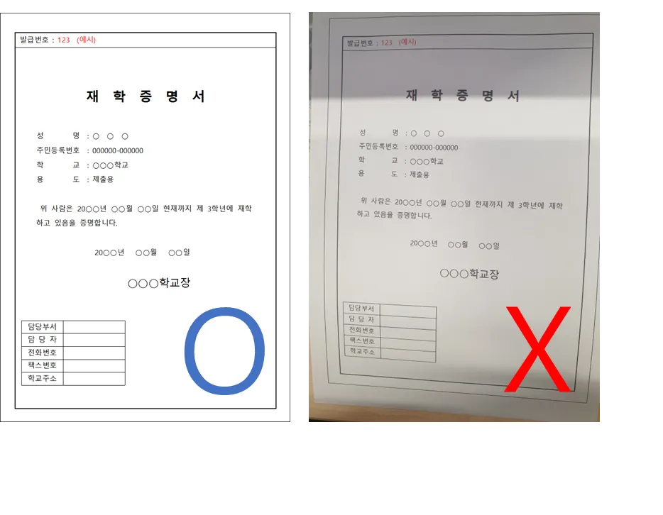 사진으로 촬영한 것, 서류 내용 식별이 어려운 것은 출입국 사무소에서 반려될 수 있으니