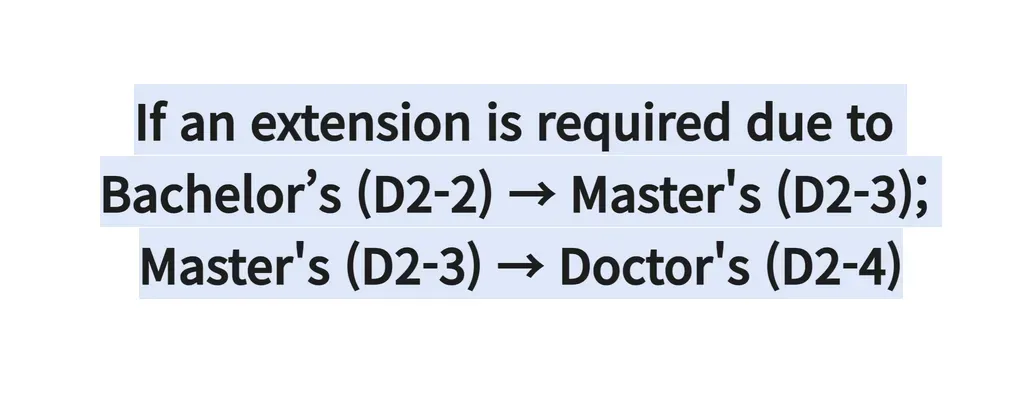 If an extension is required due to Bachelor’s (D2-2) → Master's (D2-3); Master's (D2-3) → Doctor's (D2-4)
