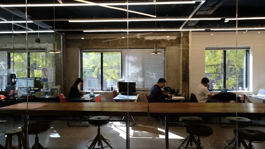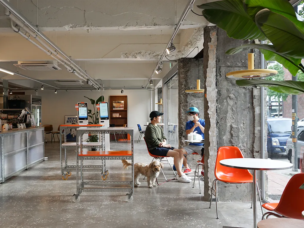 업무에 집중할 수 있는 1-2인용 테이블 7개와, 식사하거나 편하게 대화를 나눌 수 있는 큰 테이블, 푹신한 소파가 있어 다양한 자세로 편하게 일할 수 있어요. 출출하거나 커피가 생각날때, 바로 아래 1층 슈퍼스티치를 이용할 수 있어 더욱 매력적인 공간이에요.