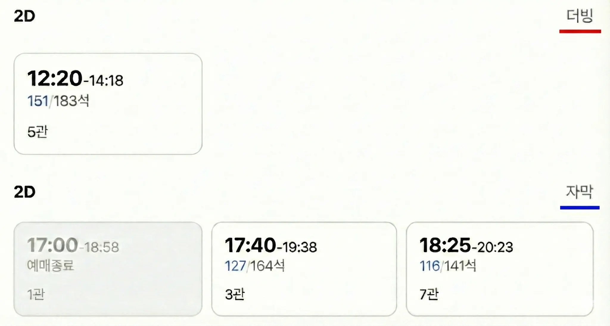 [영화 제목] / [시간] / [인원 수] 장 주세요.