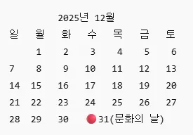 TIP : 이번 달 문화가 있는 날은 12월 31일입니다! |