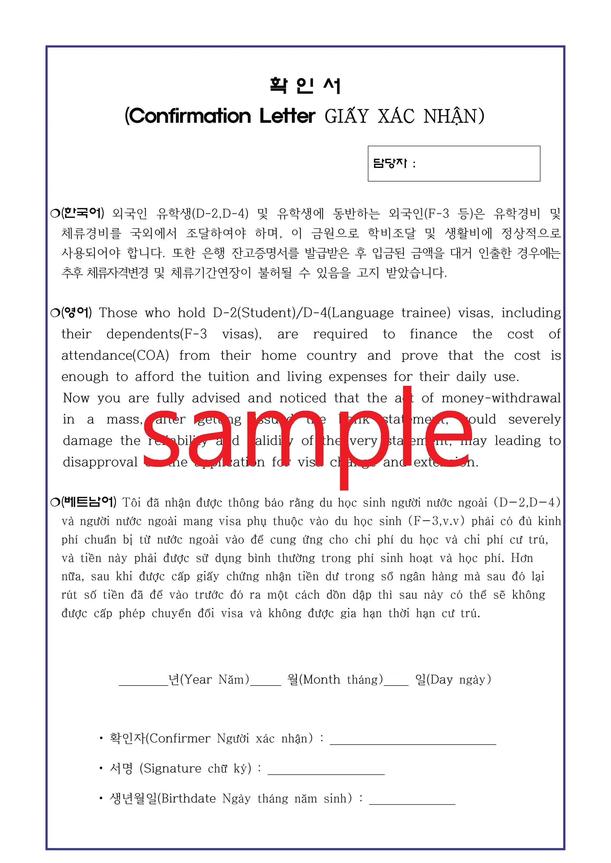 For the convenience of students, the school will provide Hirevisa with the certificate of enrollment.